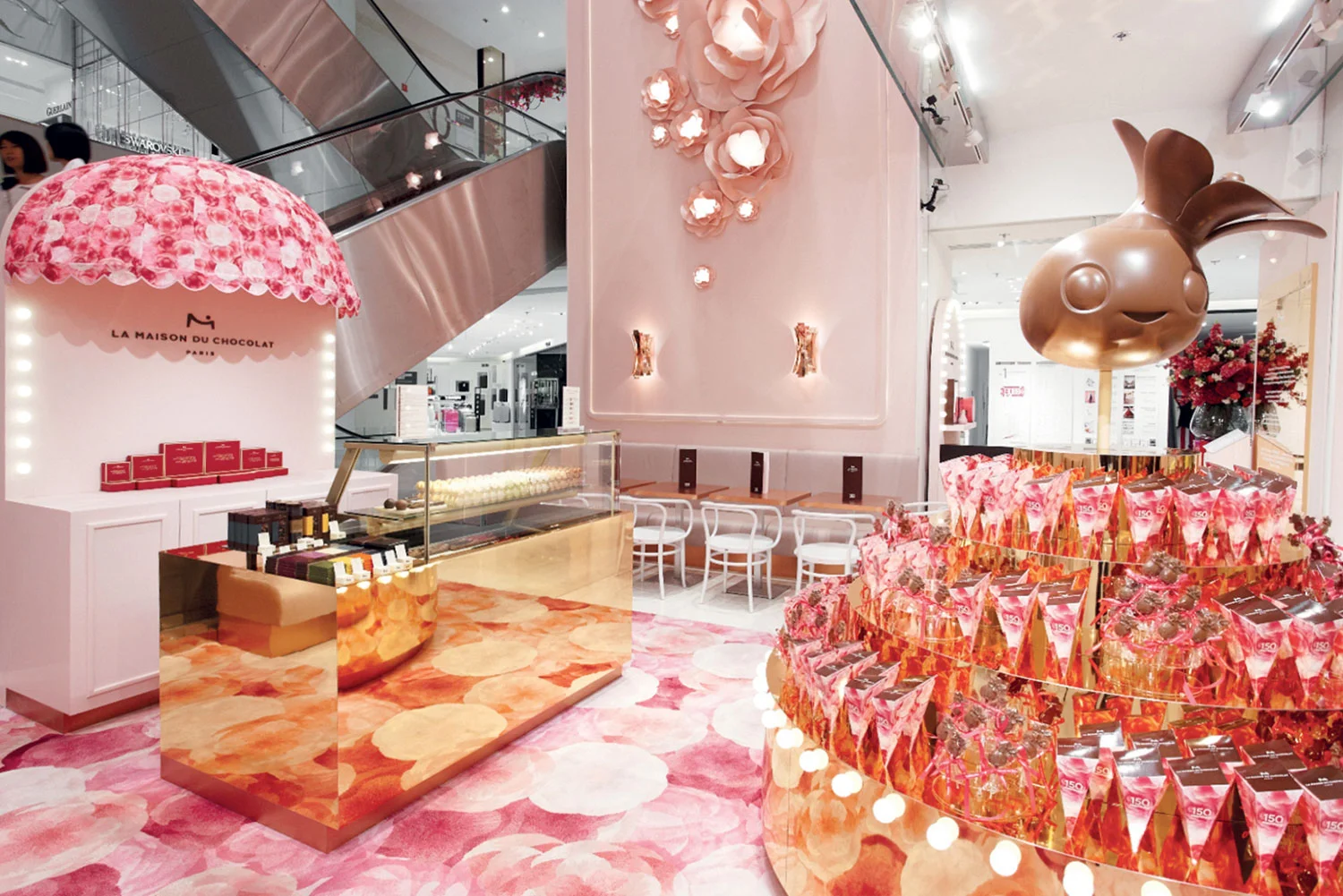 Flower print was used in the storefront, interior decoration and Maison du Chocolat interiors and packaging.